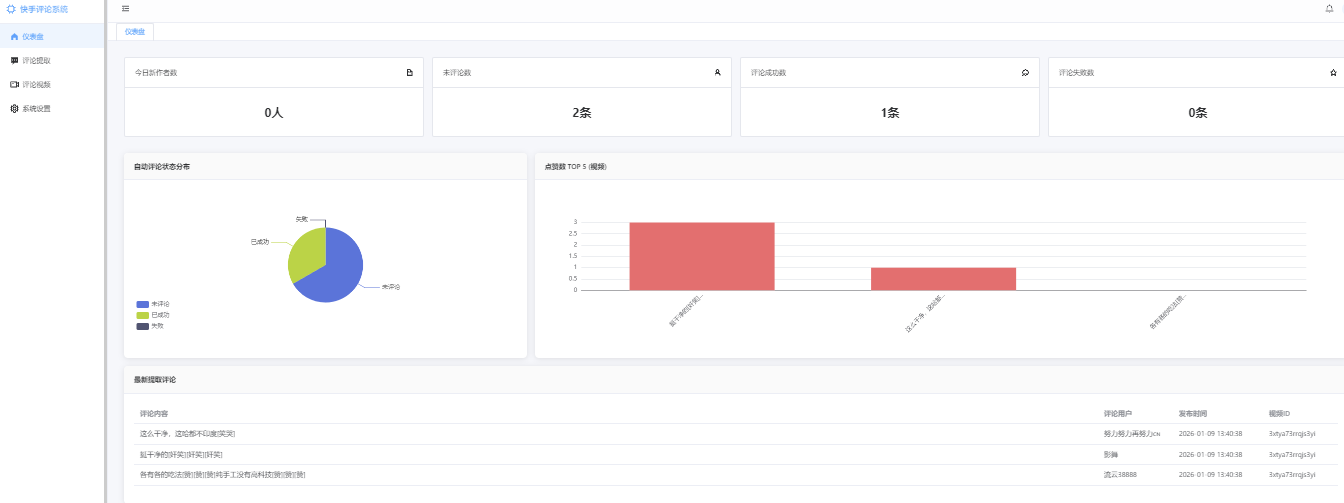 一款专为快手平台打造的自动化评论管理工具,助力创作者和运营者高效管理账号评论互动引流,大幅提升账号活跃度与粉丝粘性。
