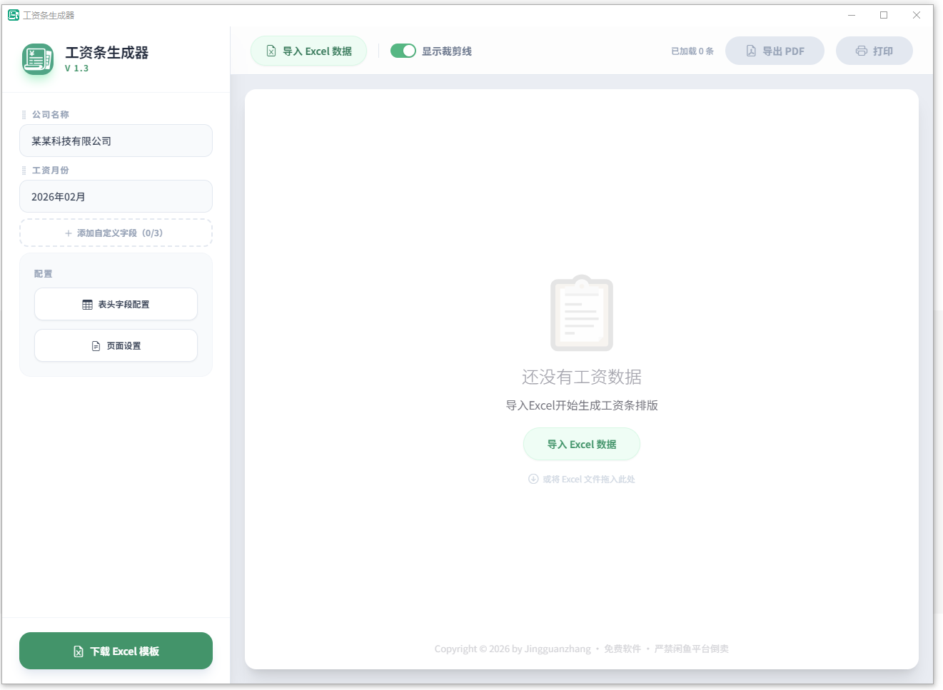 这是一款专为财务人员与 HR 打造的轻量化财务辅助工具,旨在彻底解决传统 Excel 制作工资条时繁琐的合并排版与打印痛点。支持 Excel工资表一键生成工资条。